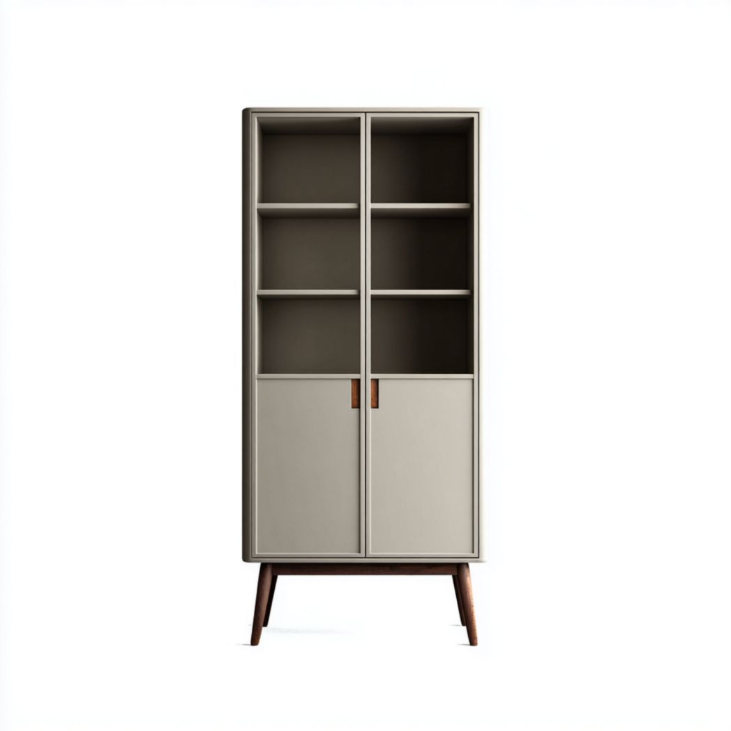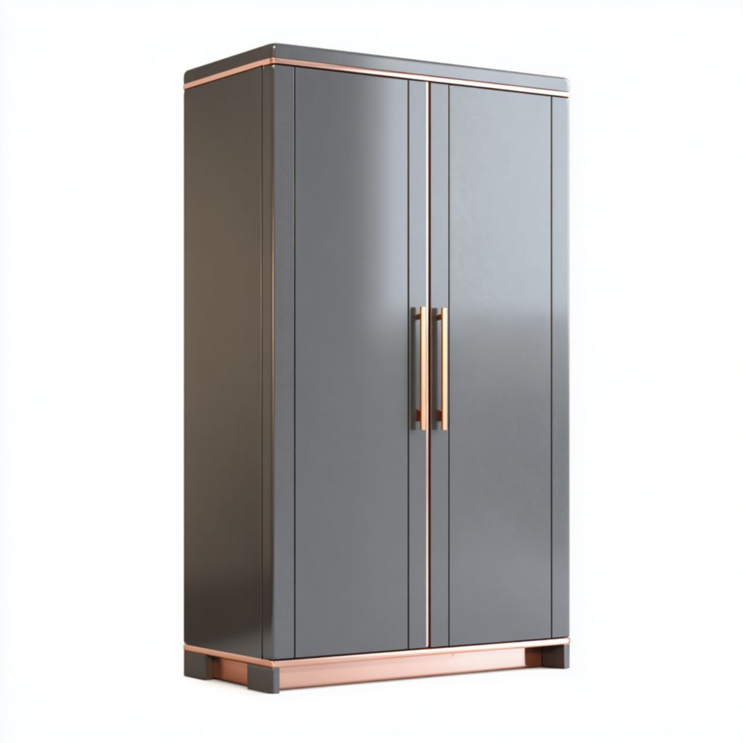 Armoire à portes battantes en bois de chêne et métal noir avec finition dorée