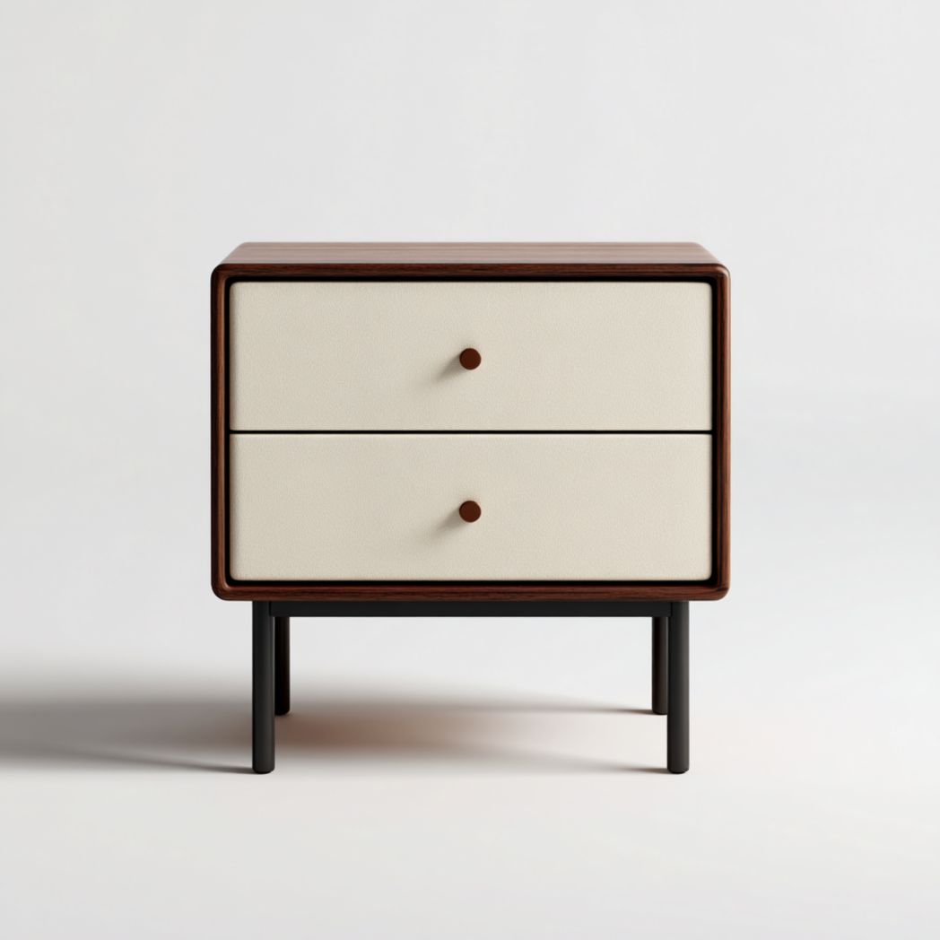 Table de chevet en bois avec tiroirs en cuir et pieds métalliques