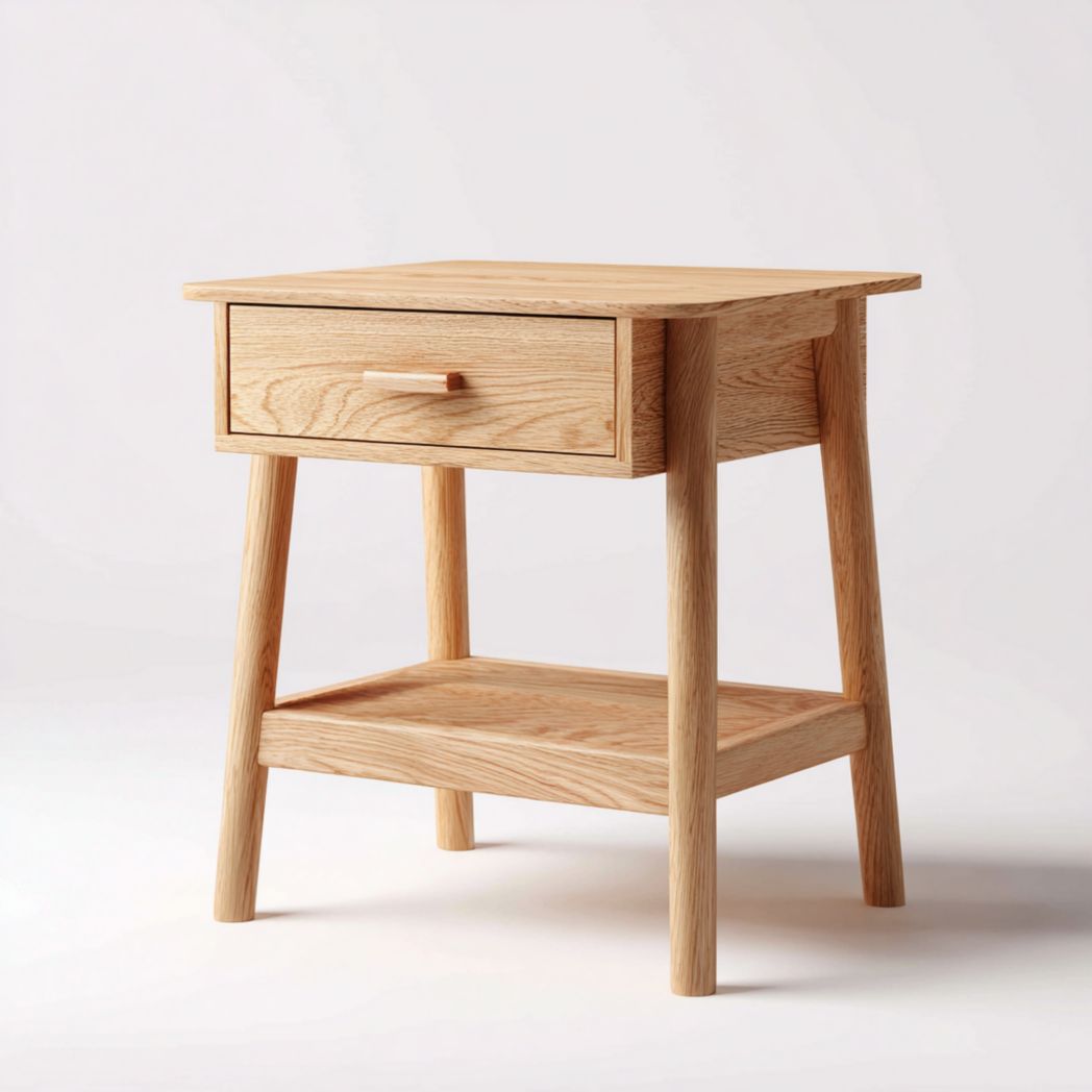 Table de chevet en chêne massif avec tiroir et étagère inférieure